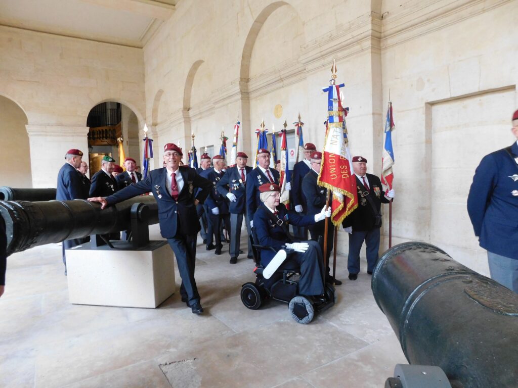 The French Paras are the only soldiers and ex-soldiers permitted to sing in the grounds of Les Invalides. This dates back to 2010 and the funeral of the revered Parachute General Marcel Bigeard. Prior to this, singing was strictly forbidden, the hymns in the cathedral aside, but nobody could stop the French Paras once they started in honour of their chief. Afterwards, in that typically French way, the French Paras were formally accorded permission to sing there. Unfortunately, the courtyard was closed for building work and the parade had to take place in front of the building.