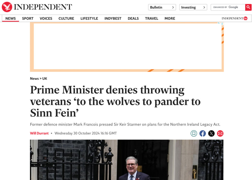 A Parliament website petition opposing changes to the Legacy Act garnered enough signatures within a matter of weeks to trigger a Westminster Hall debate. The repeal of the Northern Ireland Troubles (Legacy and Reconciliation) Act 2023 was one of Sir Keir Starmer’s pre-election promises to Sinn Fein and has far wider implications for the military and the country than many seem to realise.